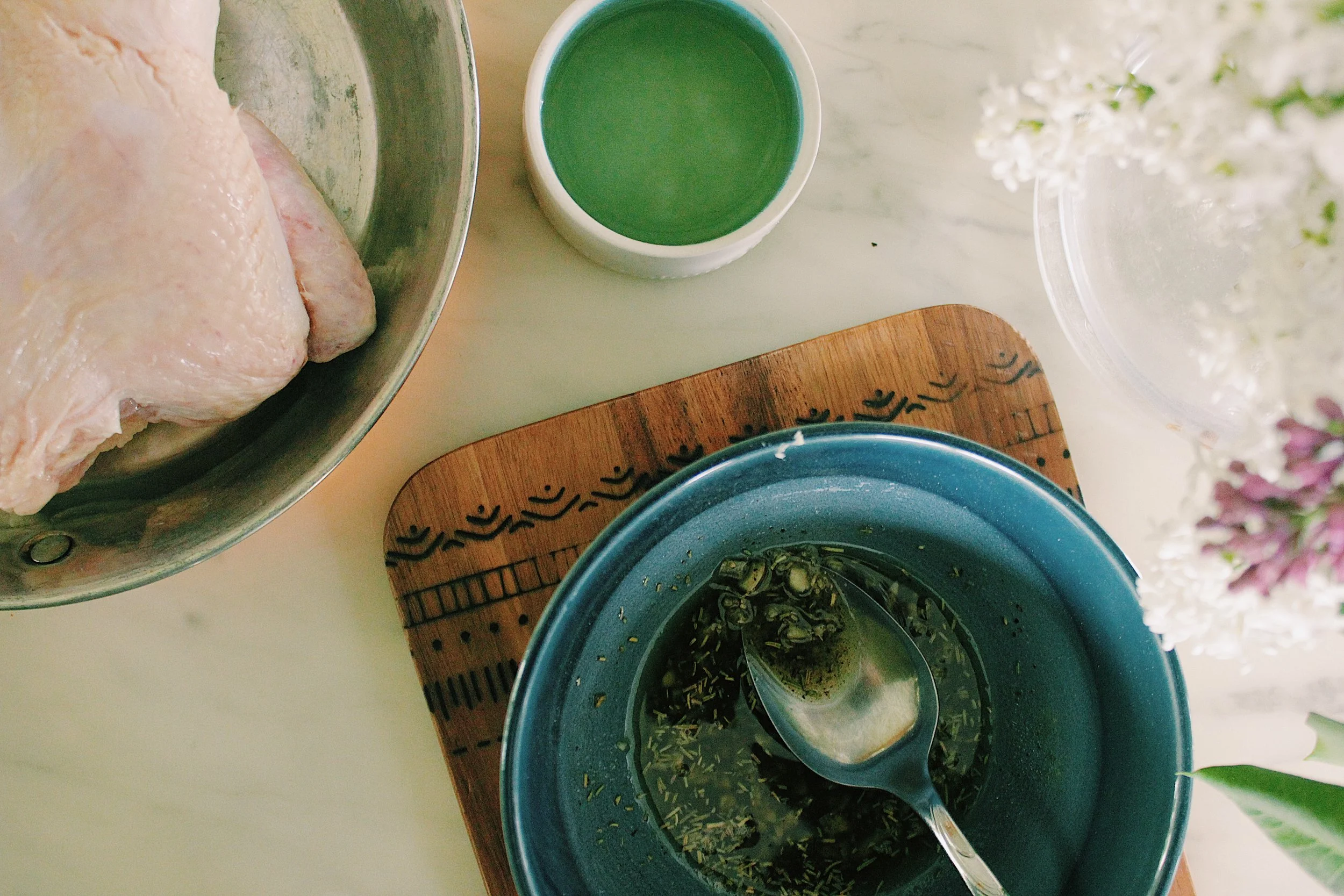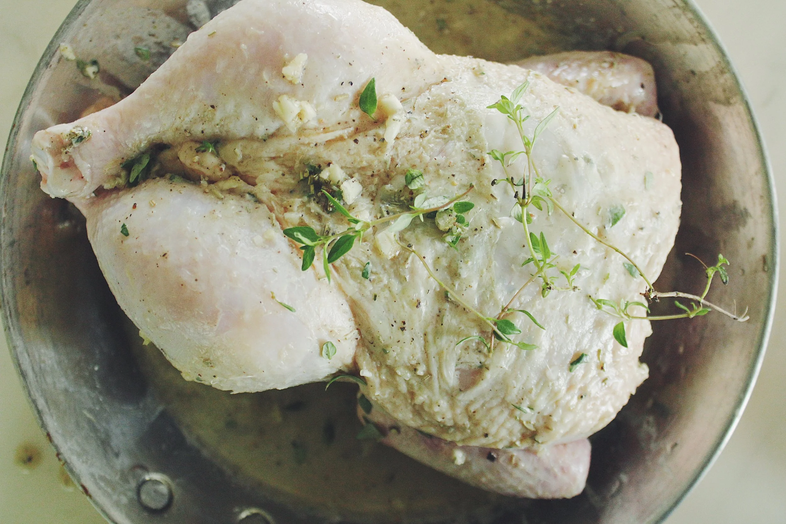 This Earth Day, we slow roasted a farm fresh chicken from Hartz Natural Food Store for tonight's dinner celebration. Some say buying local or organic is too expensive. For us, making the life change required a slight shift in mentality: quality vs. quantity. We keep our portions humble to keep our body and minds wholesome. Additionally, we try to use every food scrap we can. The $12 chicken roast will provide dinner while the leftovers will make chicken salad and bone broth. Tomorrow I will simmer the bones with vegetable scraps (peels from onions, garlic, carrots, sweet potatoes; the tops of celery and beets; herb and broccoli stems etc) for an all natural broth that will be used in future dinner meals or homemade soup. My lovely midwife, Kate Aseron, published a cookbook that covers the basics of bone broth making along with a slew of other hearty recipes. You can find the Kindle version here.